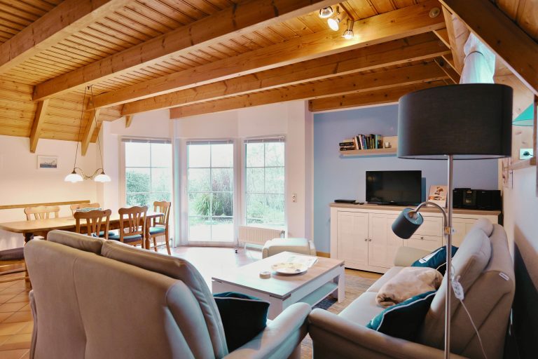 Dank der ruhigen Lage, abseits vom Durchgangsverkehr, kannst du hier die Stille und den Blick ins Grüne in vollen Zügen genießen. Ob auf der Terrasse oder bequem vom Sofa aus – die Natur ist immer zum Greifen nah. Höre das sanfte Balzen der Fasane, das Gackern der Wasservögel oder beobachte die Tiere, die hin und wieder zu Besuch kommen..