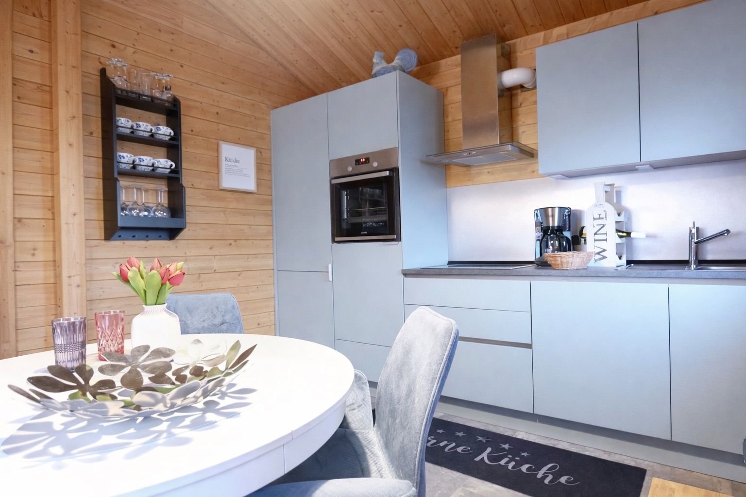 Die komplett ausgestattete Küche lässt keine Wünsche offen: Mit Geschirrspüler, Mikrowelle und Backofen kannst du bequem deine Mahlzeiten zubereiten und dich auch im Urlaub ganz wie zuhause fühlen.