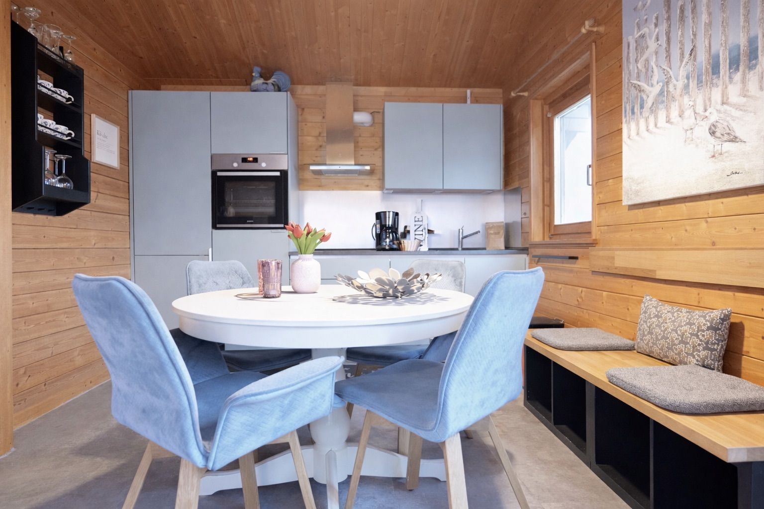 Im Inneren erwartet dich ein großzügiger Wohnbereich mit einer hochwertigen, gemütlichen Sofaecke und einem einladenden Essbereich. Hier kannst du entspannen, lesen oder den Abend nach einem langen Strandtag ausklingen lassen.
