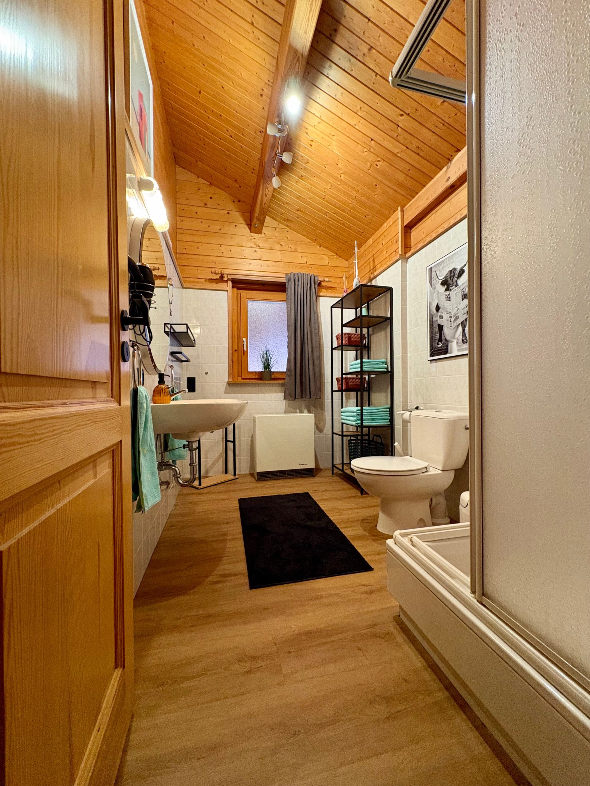 Auf Anfrage stellen wir dir gerne ein Kinderbett und einen Hochstuhl zur Verfügung, sodass sich auch Familien mit kleinen Kindern rundum wohlfühlen können. Ein modernes Duschbad, Flur sowie ein Abstellraum runden das Angebot ab.