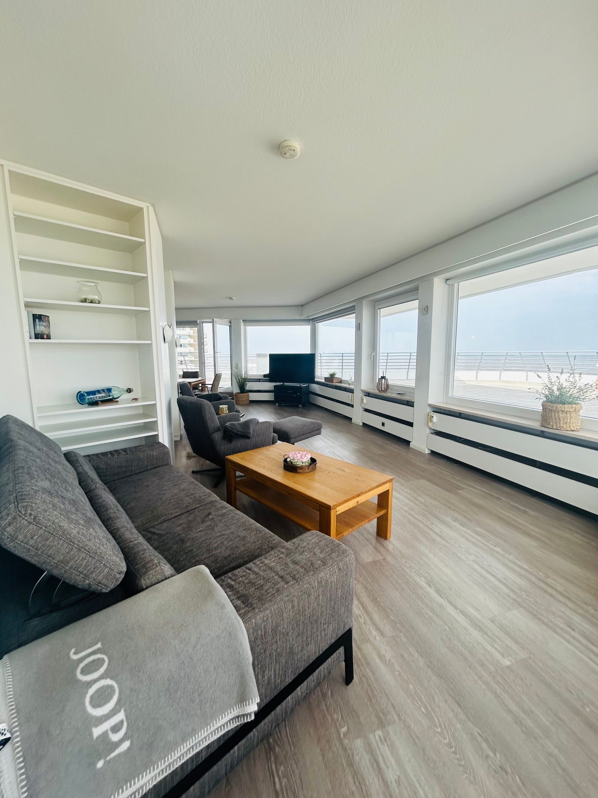 Das Penthouse liegt im 8. Stock im Haus Hanseatic (Fahrstuhl bis zur 7.Etage) und bietet dir einen atemberaubenden Meerblick, der dich jeden Morgen begrüßt. Die Wohnung verfügt über ein stilvolles Schlafzimmer sowie ein gemütliches Wohnzimmer, das mit hochwertigen Möbeln und einem einladenden Esstisch ausgestattet ist. Hier kannst du entspannte Abende verbringen und den Tag in vollen Zügen ausklingen lassen.