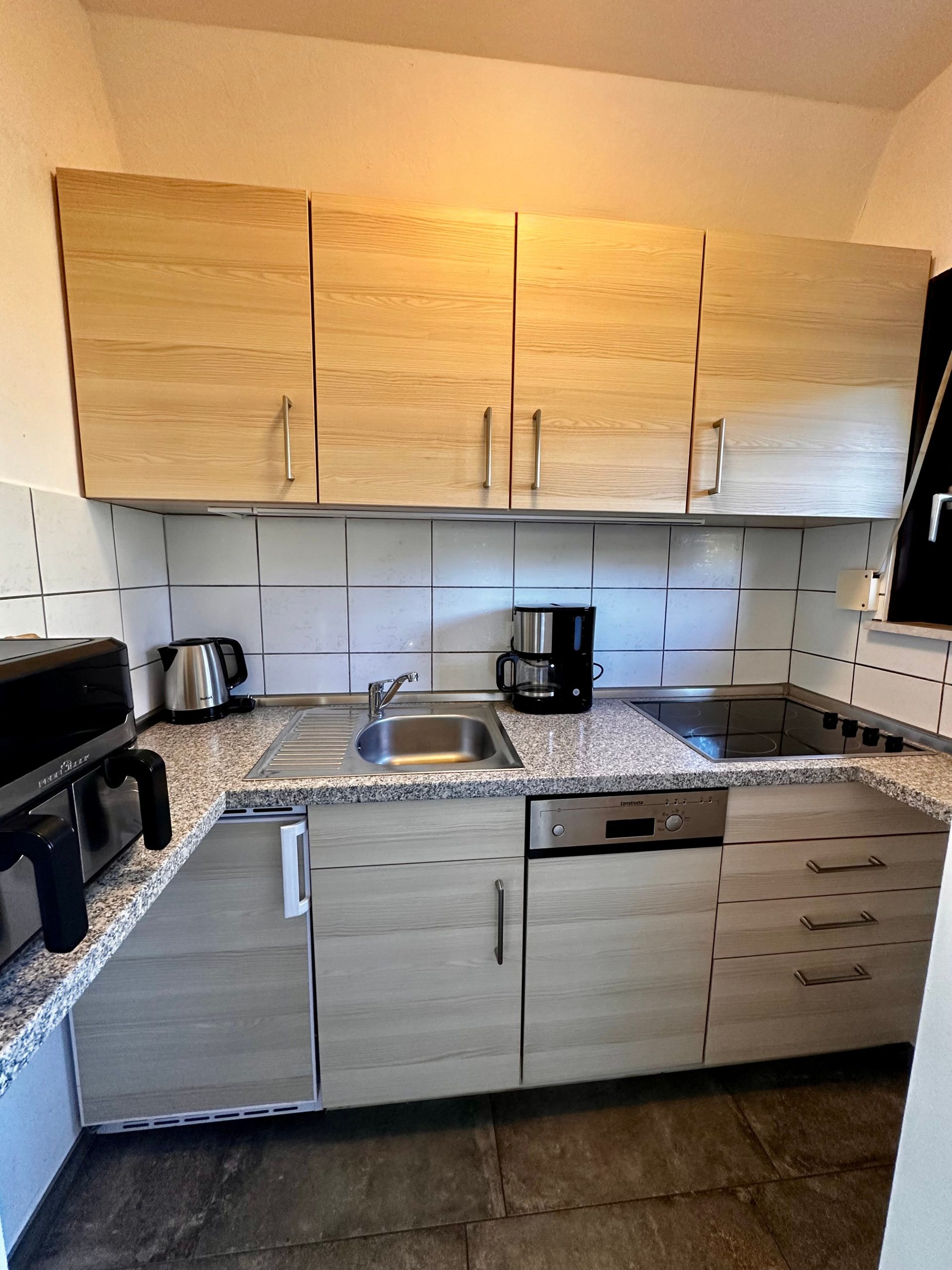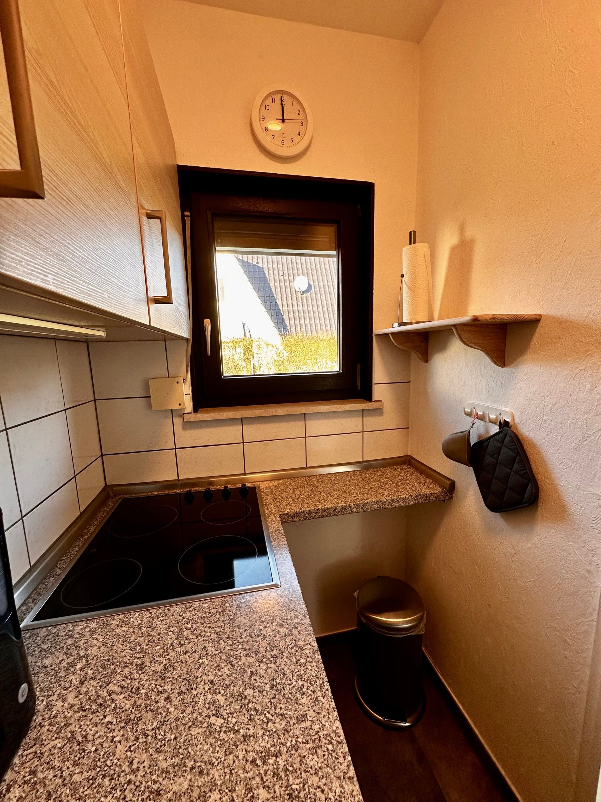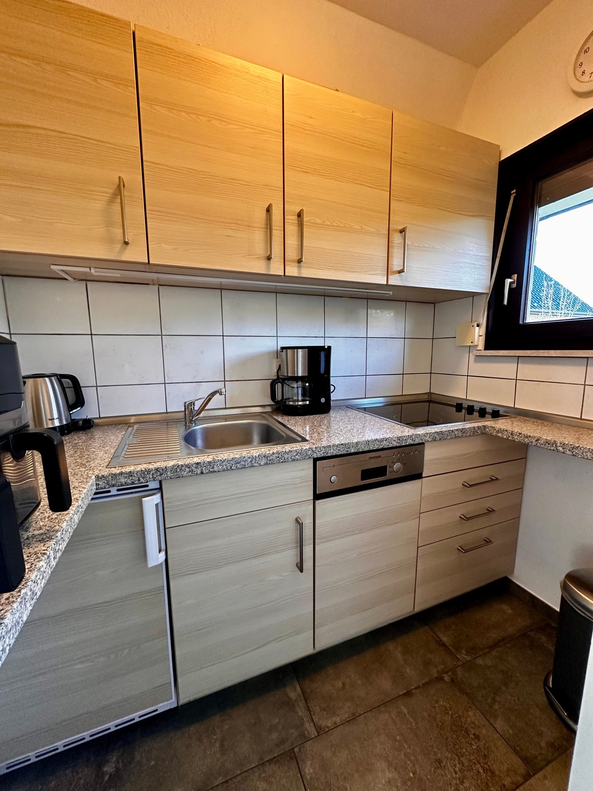 Das Ferienhaus verfügt über einen großzügigen, modernen Wohnbereich, in dem du eine gemütliche Sofaecke, einen Esstisch und einen Fernseher vorfindest. Der Küchenbereich ist voll ausgestattet, hier stehen dir ein Kühlschrank mit Gefrierfach, eine moderne Spülmaschine, eine Mikrowelle, eine Kaffeemaschine, ein Toaster, ein Wasserkocher sowie eine Heißluftfriteuse zur Verfügung und erleichtern dir die Selbstversorgung während des Aufenthalts.